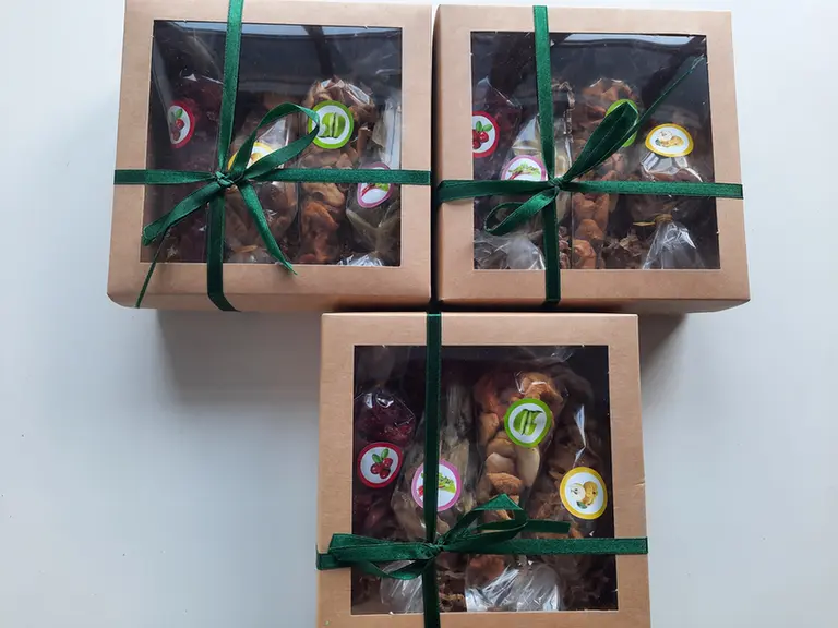 Džiovintų vaisių rinkinys - obuoliai, rabarbarai, svarainiai, spanguolės